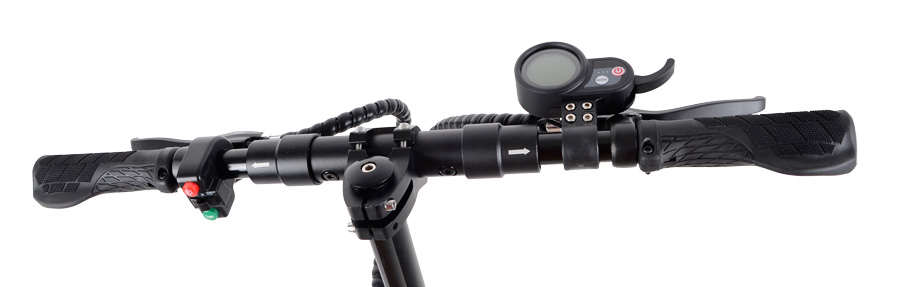 Na transreflexním displeji skvěle čitelným i na přímém slunci či v noci můžete sledovat aktuální stav baterie, aktuální rychlost, dobu jízdy a ujetou vzdálenost. USB portem zezadu displeje lze dokonce nabíjet váš mobilní telefon či tablet, a to buď za jízdy nebo při stojící koloběžce pomocí 2-hodinového časovače.