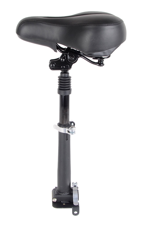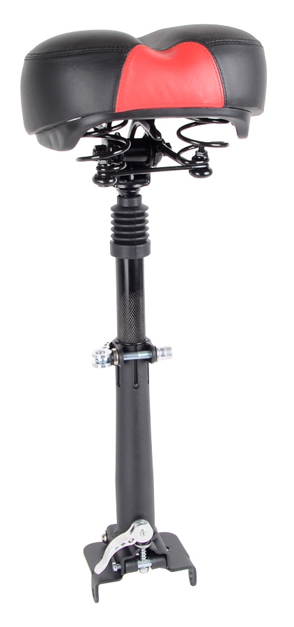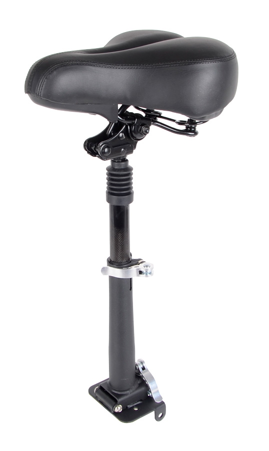 I namontované sedlo lze spolu s koloběžkou sklápět, takže vás neomezuje ani při přenášení koloběžky. Sedlo je vícenásobně odpružené (odpružené sedátko i sedlovka) tak, aby na něm byla jízda co nejpohodlnější.