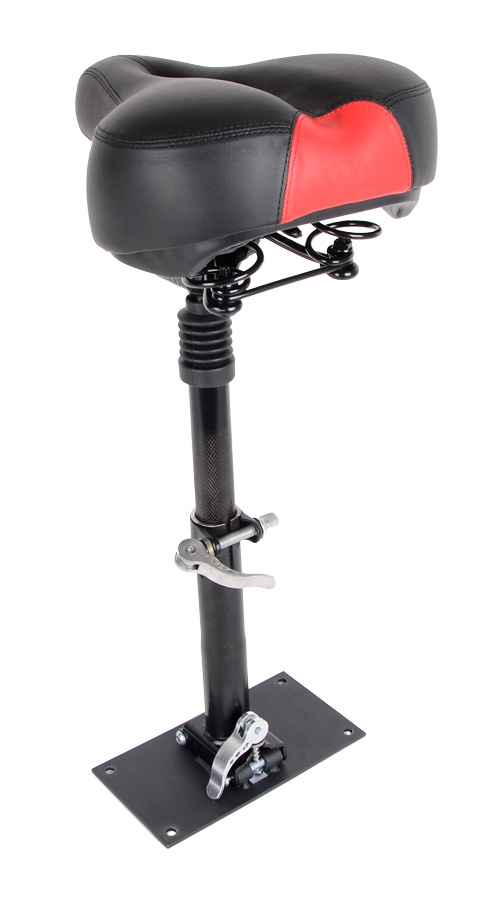 I namontované sedlo lze spolu s koloběžkou sklápět, takže vás neomezuje ani při přenášení koloběžky. Sedlo je vícenásobně odpružené (odpružené sedátko i sedlovka) tak, aby na něm byla jízda co nejpohodlnější.