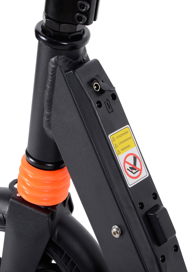 S důmyslným skládacím mechanizmem ji složíte či rozložíte do 3 vteřin a při délce složeného rámu 106 cm a hmotnosti pouze 11,2 kg jí snadno přenesete do výtahu nebo převezete autem, vlakem, MHD a uskladníte doma či v garáži. Protože lze rám sklopit i do parkovací polohy, koloběžka nepotřebuje stojánek.